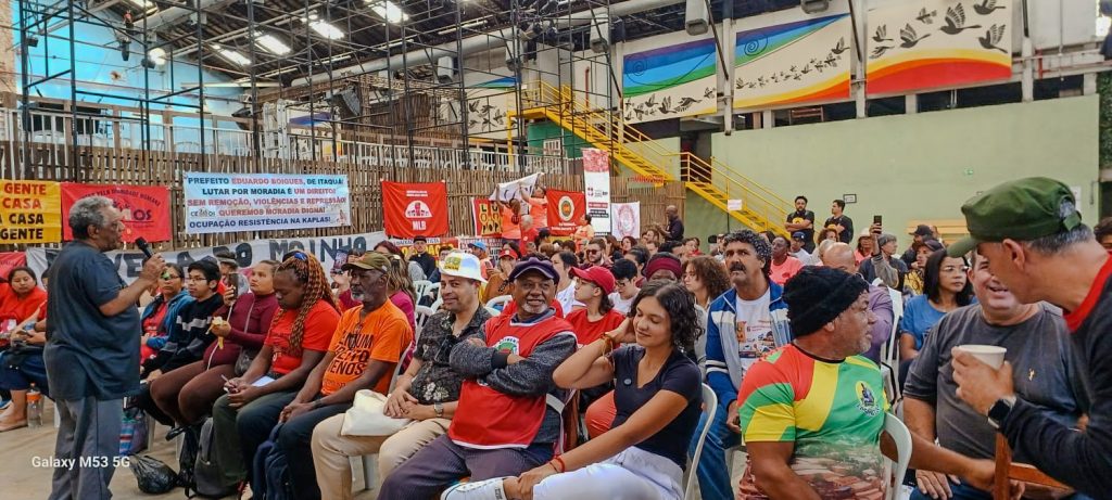 A Plenária realizou um balanço de seus territórios, através de discussões em grupo que tratou dos seguintes temas: 1. Criminalização da lutas, das comunidades e das lideranças – ataques da polícia, da milícia e extrema direita (nossa autodefesa); 2. O uso do “risco” como desculpa para despejos – despejos climáticos e autos de infração; 3. Despejos administrativos; 4. Atuação da Comissão de Conflitos Fundiários do TJ/SP, e 5. Problemas e limites das políticas de moradia nos níveis municipal, estadual e federal – privatização da política de moradia.