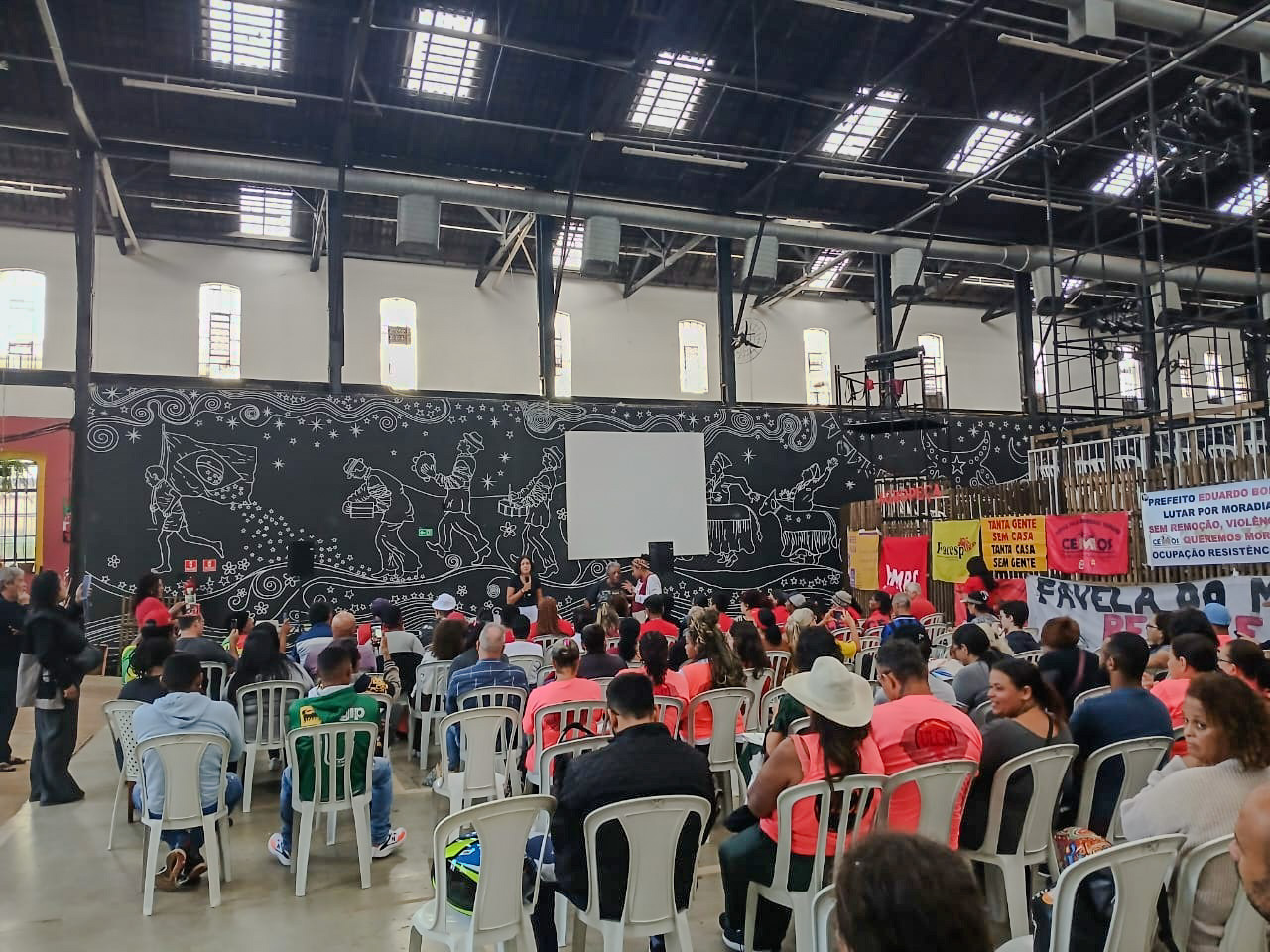 Membros da FACESP se somaram a cerca de outras 130 lideranças populares do Estado de São Paulo, que participaram neste dia 28 de fevereiro da “Plenária Estadual de Luta Contra os Despejos e a Violência Policial Contra Lideranças”, que aconteceu no Galpão Elza Soares, do MST. A atividade foi promovida pela “Campanha despejo Zero / SP” e garantiu condições para vinda de várias delegações de alguns municípios, onde existem ameaças de reintegrações ou conflitos fundiários.