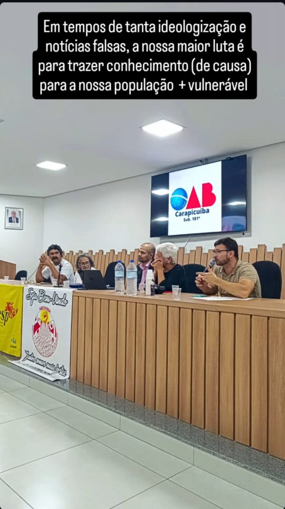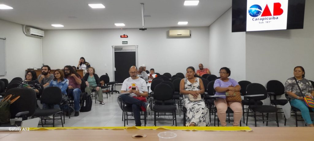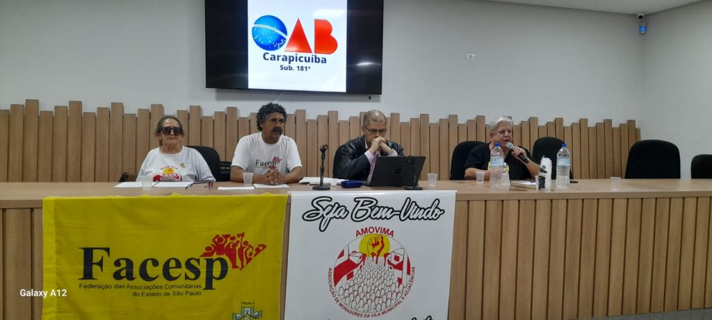 Várias lideranças estiveram presentes nesta quarta (29) no Seminário – “Habitação Popular e Organização Social” realizado na cidade de Carapicuíba – Sede da OAB, organizado pelas entidades: FACESP, MRFU e AMOVIMA com o objetivo de formação para ativistas que atuam na luta pela moradia e regularização fundiária, trazendo maior compreensão política sobre a necessidade da organização social nos territórios.
