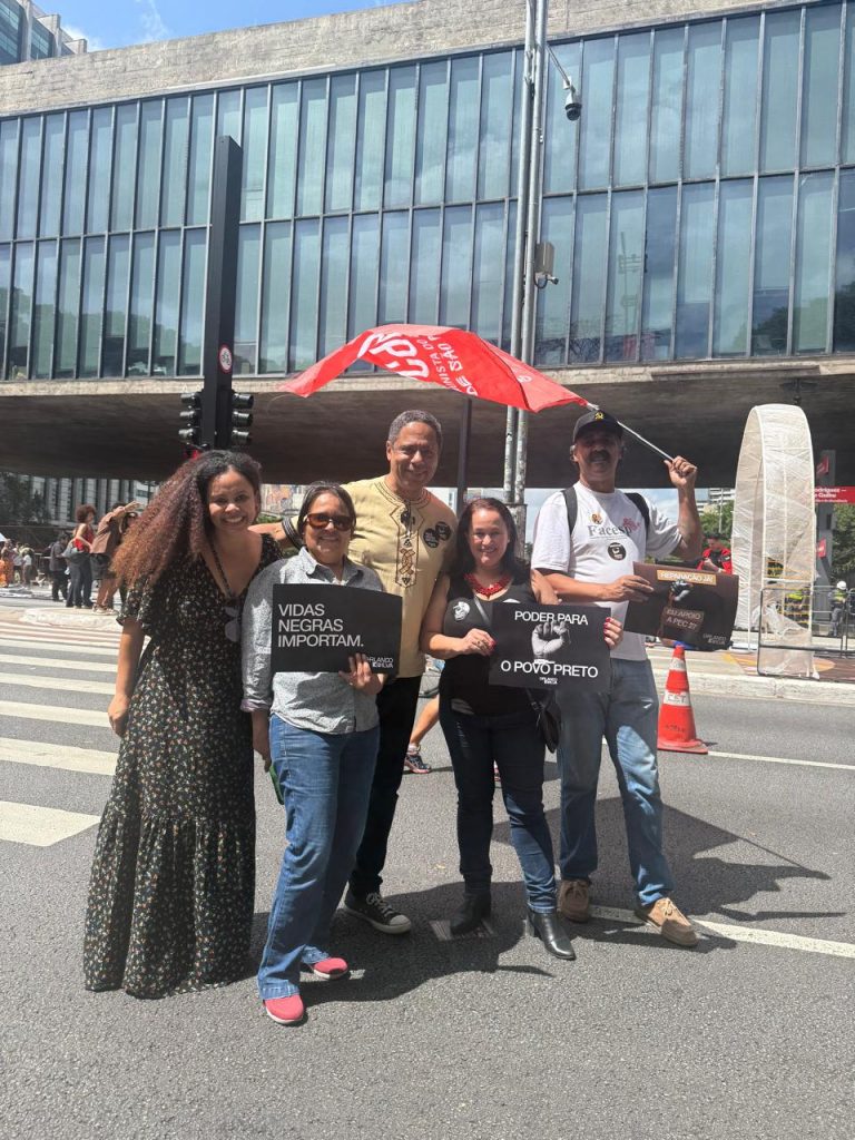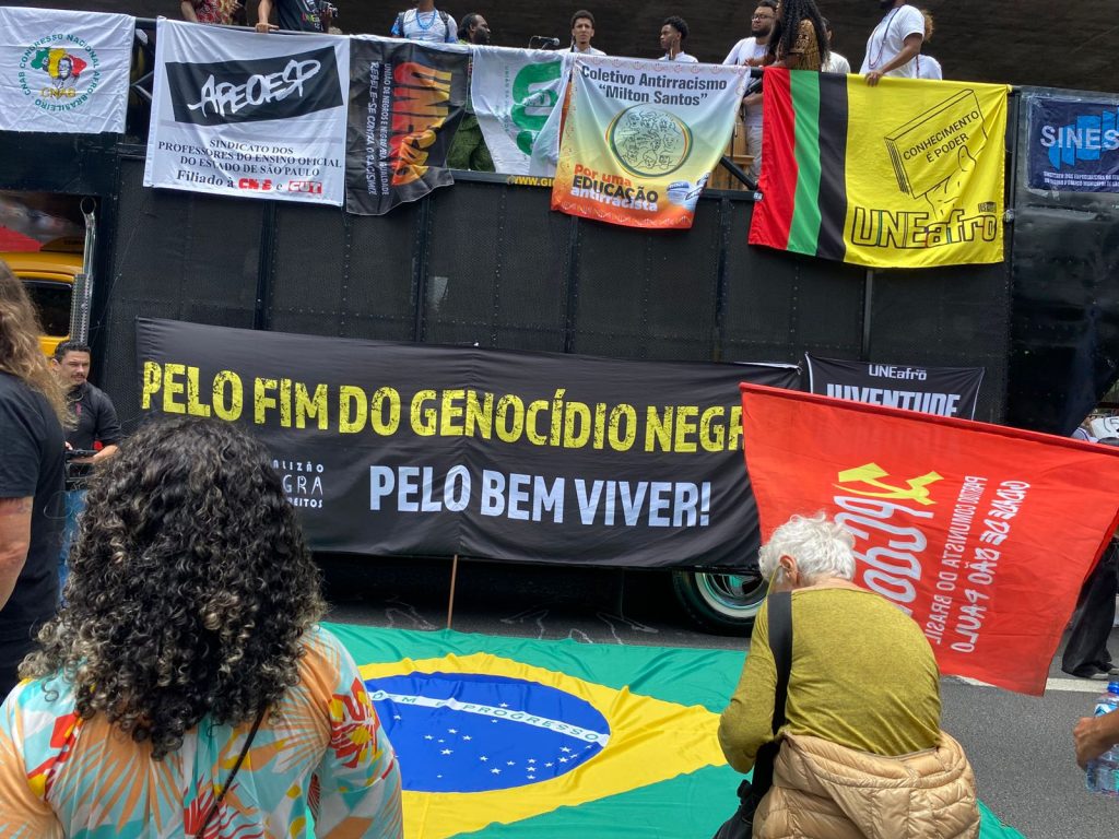 O ato teve concentração a partir das 14h e início com atividades culturais de samba, rap, reggae e poesia, seguido das falas das entidades nacionais que não deixaram de citar a permanente violência policial aplicada sobretudo a jovens negros da periferia, como na chacina do litoral paulista em 2023, ordenada por Tarcísio de Freitas, ou agora no RJ, com mais de 120 mortes, tendo como mandante o governador Cláudio Castro.
