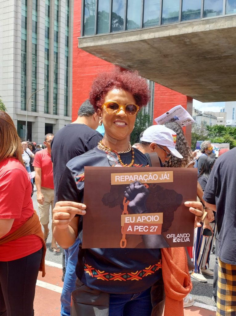 O ponto alto da manifestação foi a fala do Deputado Federal Orlando Silva (PCdoB), relator da PEC (27) da Reparação, que insere um capítulo na CF sobre a promoção da Igualdade Racial e cria o Fundo Nacional de Reparação Econômica. Também em sua fala, o dirigente nacional da UNEGRO, Edson França, destacou “a urgência de conhecermos e debatermos a PEC 27, pois é um passo fundamental para corrigir injustiças históricas e construir um país mais justo e igualitário. A reparação é uma dívida da sociedade com o povo negro”.
