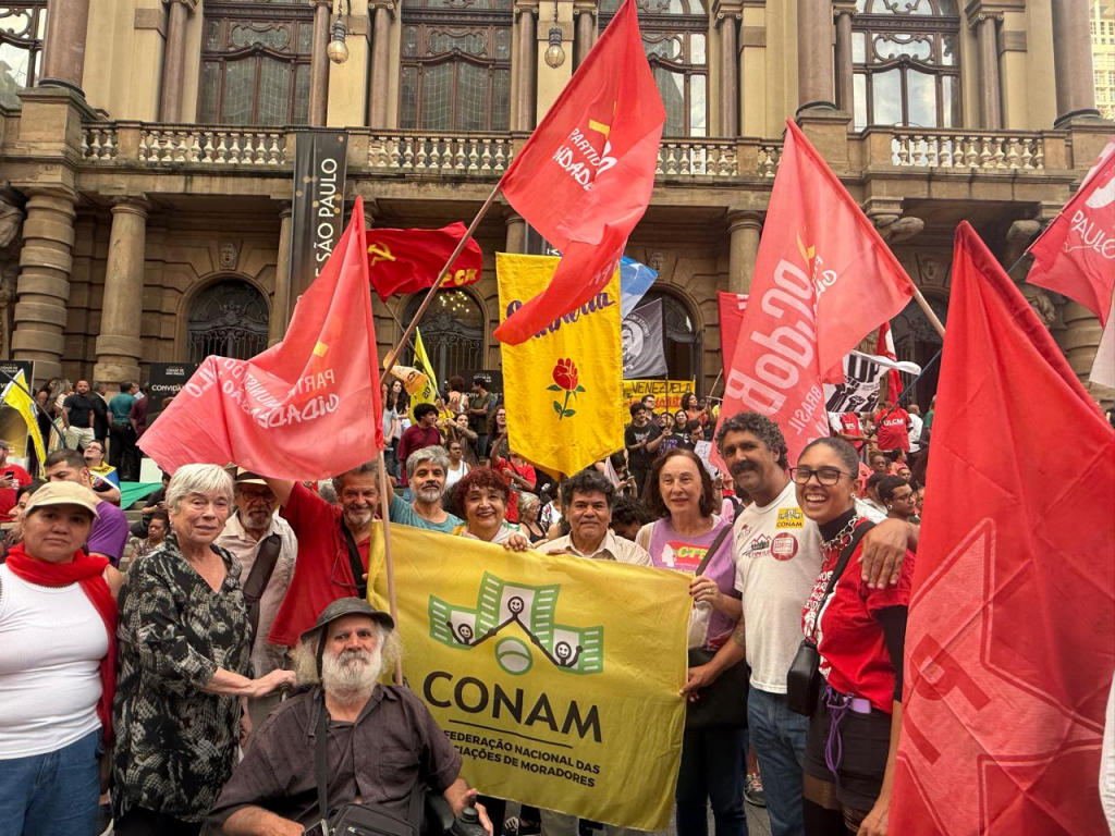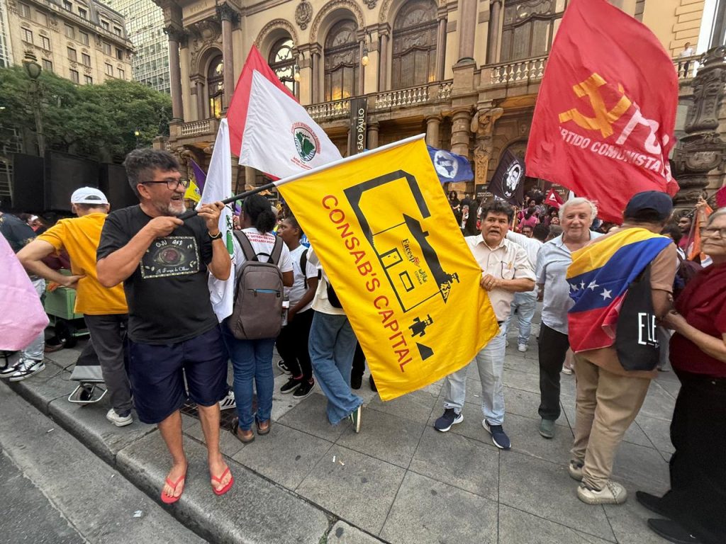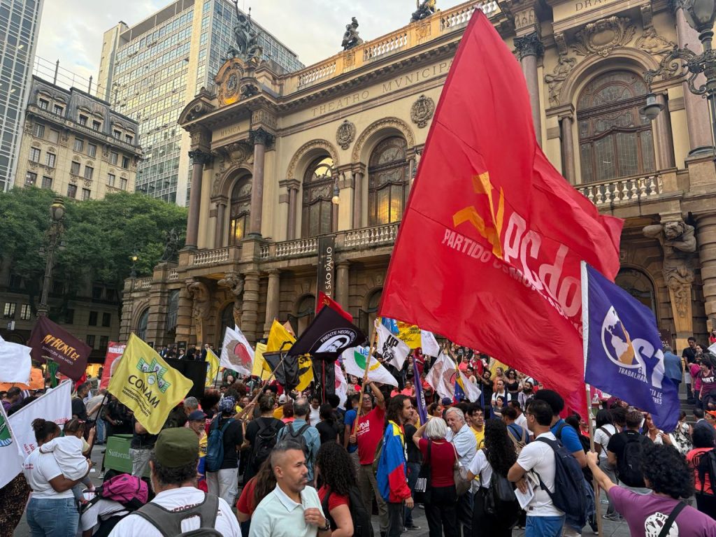 A Alba Movimentos em conjunto com as Frentes Brasil Popular e Povo sem Medo realizaram nesta quarta (28), em frente o Teatro Municipal, o Dia Continental de Mobilização em solidariedade ao povo venezuelano, com atos confirmados em todas as regiões do país. A jornada de lutas denuncia a ingerência imperialista e reforça a defesa da soberania da Venezuela, com o lema “Liberdade para Maduro e Cília Flores já!”.