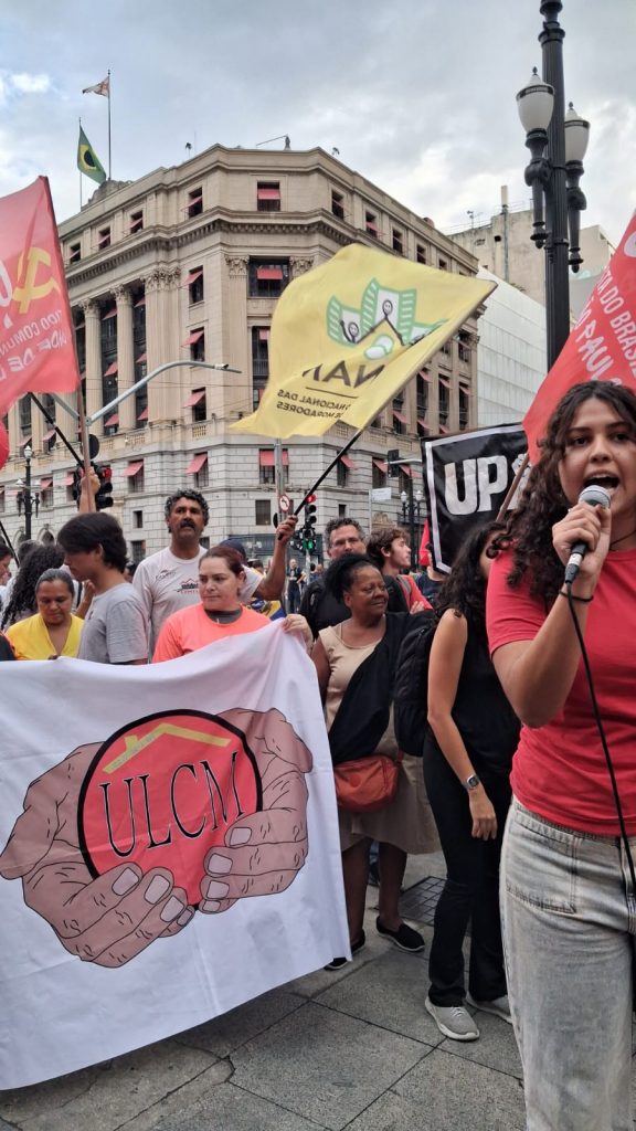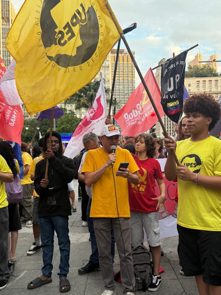 Durante o ato, Tonhão falou em nome da FACESP: “Trump não é apenas um ditador, é um bandido que rouba navios petroleiros da Venezuela, mata inocentes em alto mar e sequestra o presidente de um país soberano, é nós lantino-americanos, todos juntos, temos condições de impor uma derrota ao imperialismo americano, pois temos o exemplo de Cuba, que há 60 anos resiste!”
