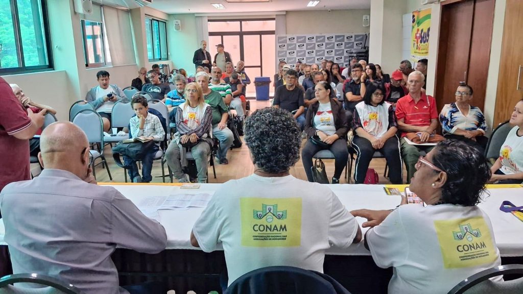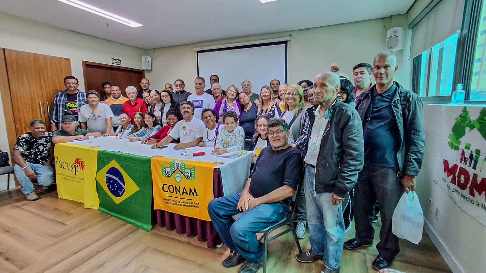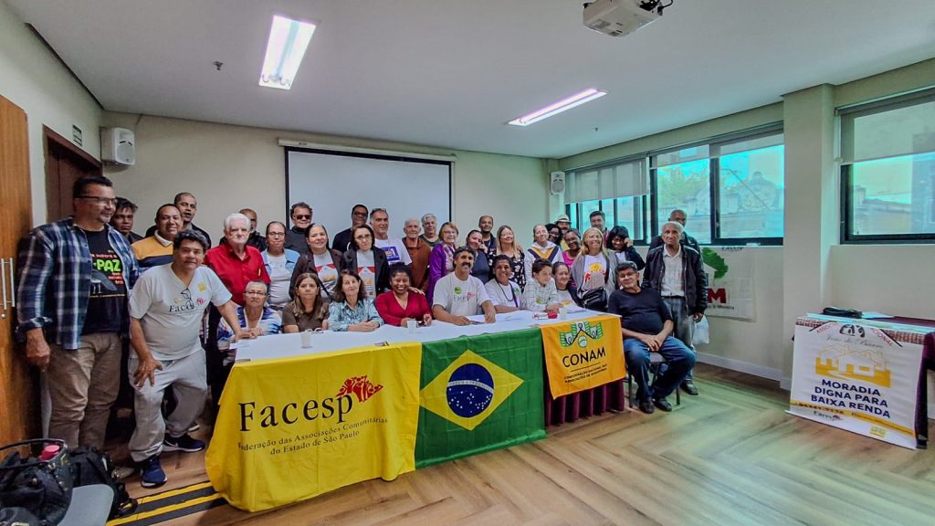 Como encaminhamentos ficou deliberado um seminário para 2a quinzena de novembro para aprofundar temas como moradia, regularização fundiária e saúde. Companheiros e companheira da FACESP que apresentaram as mesas temáticas também ficaram de enviar seus resumos. Ao final, Tonhão e Nice encerraram a plenária saudando a participação de 65 pessoas, entre lideranças e diretores. Como último ato, a plenária se juntou e mandou um vídeo para a presidente Maura Augusta, que encontra-se internada, tratando de uma enfermidade, dizendo “Maura Estamos Contigo!”